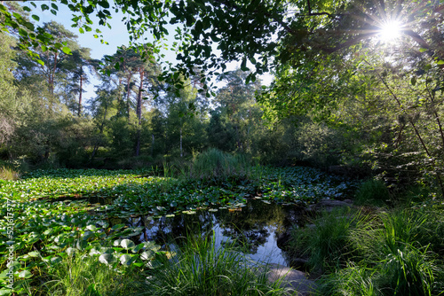 © hassan bensliman, Obraz premium Water lilies of the Piat pond in Fontainebleau forest
