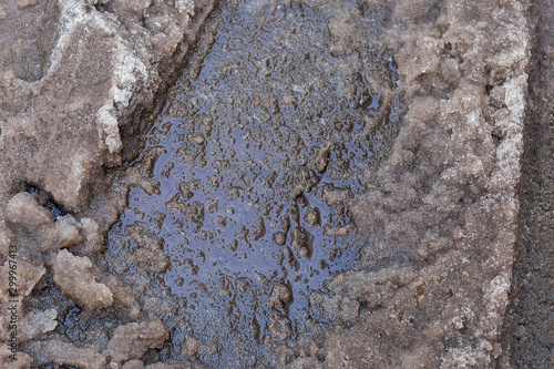 Naklejka premium water mixed with snow in the thaw, filmed in early November