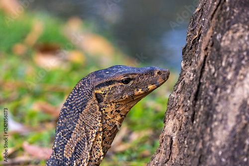© Goran, Fototapeta premium Water monitor in Lumpini Park, Bangkok
