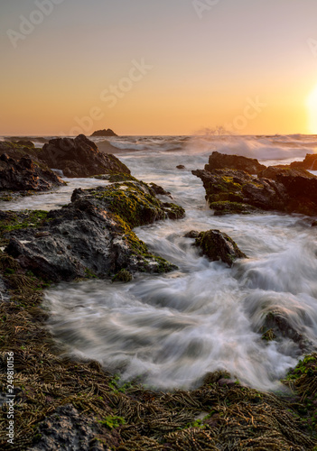 Fototapeta premium water movement over rocks at sunrise