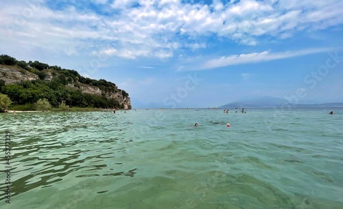 Fototapeta premium water of lake garda in italy surrounded by mountains