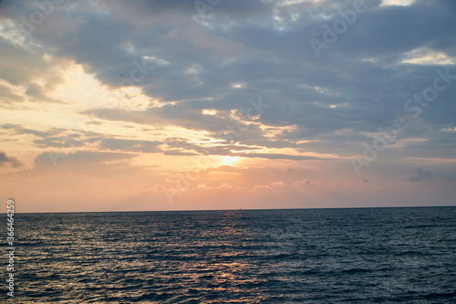 © keleny, Obraz premium Water of sea and sky with clouds and sunset.