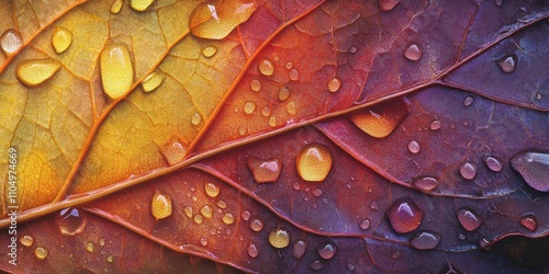 © Tevarplus, Fototapeta premium Water pearls Leaf with smooth surface A detailed macr
