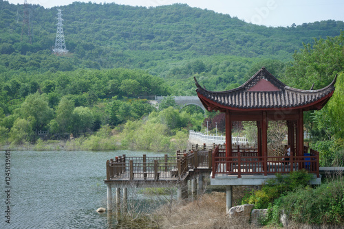 © yuhe, Fototapeta premium Water Pool and Pavilion