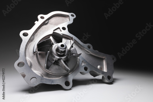 © yanik88, Fototapeta premium Water pump of the internal combustion engine cooling system. Contrasting on a gray gradient