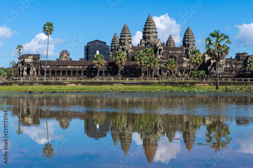 Naklejka premium water reflection of Angkor Wat in Cambodia