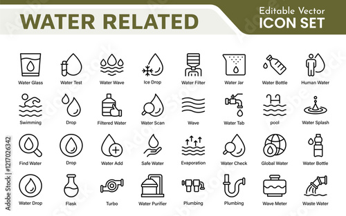 Naklejka premium Water Related Icon Set. A refreshing collection of icons showcasing water...