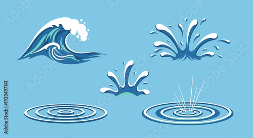© Iconic_Zulman, Obraz premium Water Ripples and Wave Set Vector Illustration