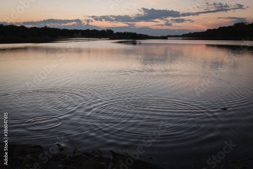 © acreamer, Fototapeta premium Water ripples on the lake at sunset