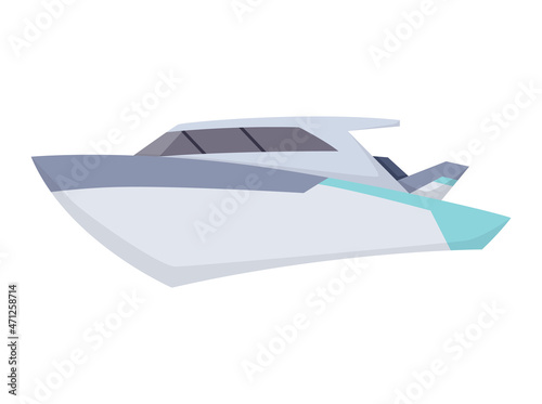 Obraz premium Water speedboat. Ship boat side view isolated on white background. Fast commercial ship, for ocean water. Isolated transport icon