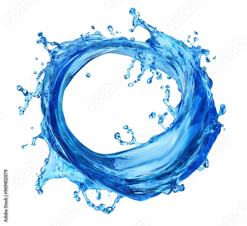 Fototapeta premium Water splash forming a circular shape, symbolizing fluidity, harmony, and purity, Cutout, Isolated on White Background