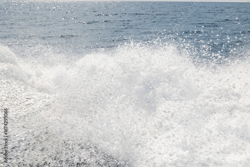Fototapeta premium Water splashing from speeding boat France Corsica Sagone 19 June 2025