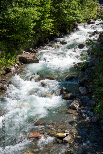 © S J Lievano, Obraz premium water stream after a waterfall in the forest