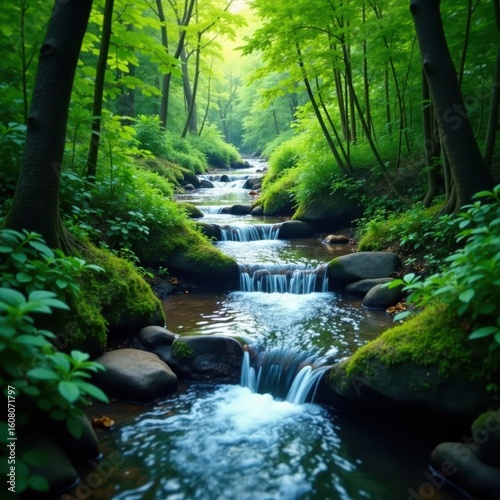 © Sujid, Obraz premium Water stream meandering through dense foliage, foliage, hanakapiai, tropical