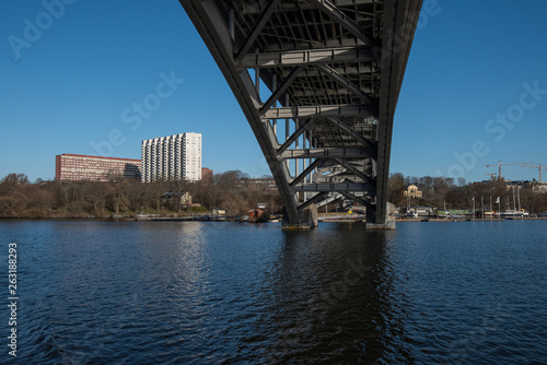 © Hans Baath, Fototapeta premium Water view over the Riddarfjärden bay and bridge in Stockholm a sunny spring day,