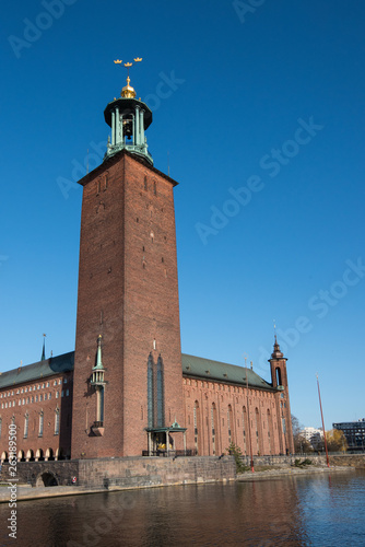 © Hans Baath, Fototapeta premium Water view over the Riddarfjärden bay in Stockholm a spring day at sunrise from the Riddarholmen island and Evert Taubes terrass.