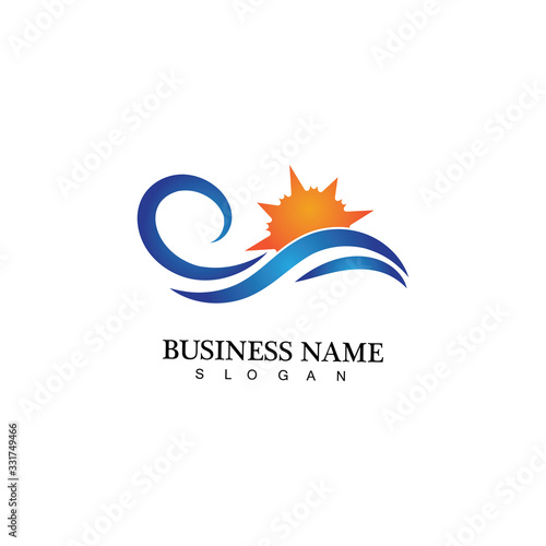 © Sunar, Obraz premium Water wave and sun icon vector illustration design logo