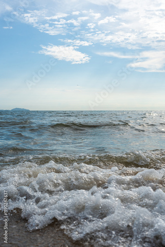 Fototapeta premium Water wave surf to beach in the sea at Bangsan beach in Chonburi at Thailand