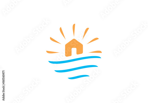 © priyo, Obraz premium water waves and home in the shape of circle abstract logo icon vector