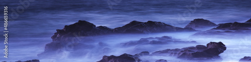 Fototapeta premium Water with rock nature photo with long exposure fog effect abstract color ocean background