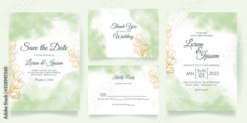 Fototapeta premium watercolo wedding invitation card template set with floral decoration
