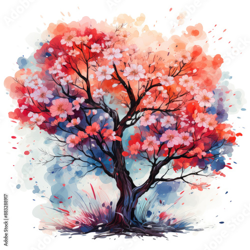 © Shopna Art, Fototapeta premium Watercolor Abstract Blossom Tree Illustration, Generative Ai