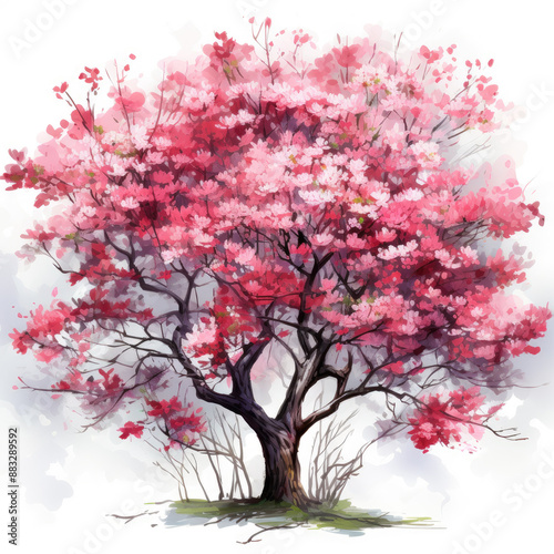 © Shopna Art, Fototapeta premium Watercolor Abstract Blossom Tree Illustration, Generative Ai