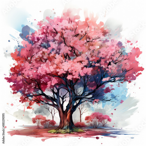 © Shopna Art, Fototapeta premium Watercolor Abstract Blossom Tree Illustration, Generative Ai