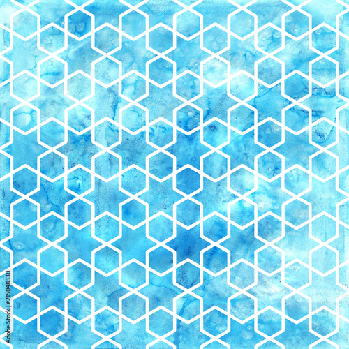 © vavavka, Fototapeta premium Watercolor abstract geometric pattern. Arab tiles. Kaleidoscope effect. Watercolor mosaic.