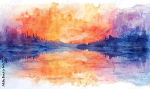 © Іван Ніколов, Fototapeta premium Watercolor abstract twilight reflections on white.