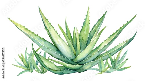 Fototapeta premium Watercolor aloe vera plant with intricate leaf textures and soft green tones