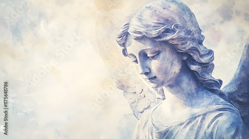 Fototapeta premium Watercolor Angel Sculpture Depicts Peaceful Sorrow
