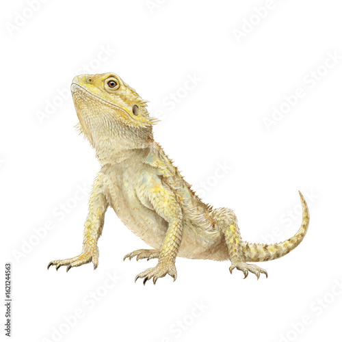 © Watercolor, Fototapeta premium Watercolor animal illustration, bearded dragon lizard isolated on transparent background, a popular reptile pet known for its unique appearance and docile nature