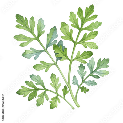 © Bang, Fototapeta premium Watercolor artemisia absinthium sprigs with delicate green and blue-gray toned leaves isolated on white background
