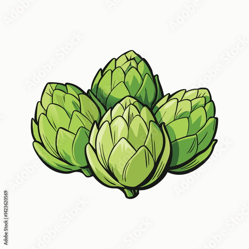 © Nahiduzzaman Shuvo, Obraz premium Watercolor Artichokes group sketch style minimalist head logo, Icon, element. Vector illustration