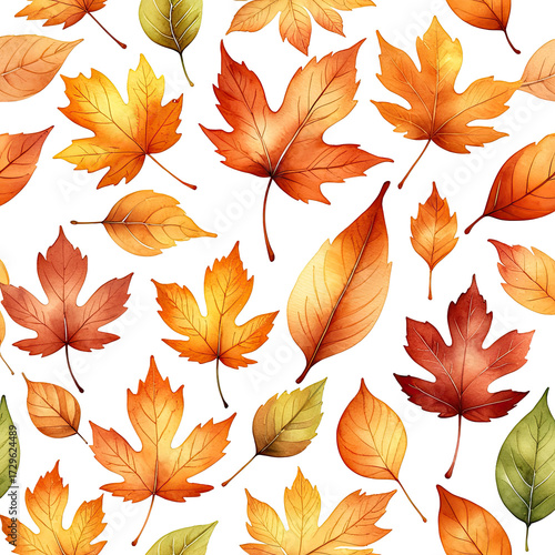 Fototapeta premium Watercolor autumn foliage, vibrant leaves, black background