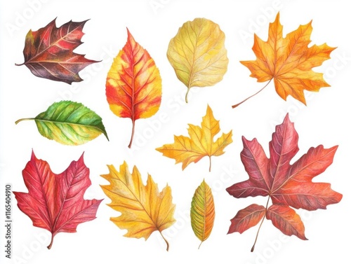 Fototapeta premium Watercolor Autumn Leaves - A Collection of Fall Foliage