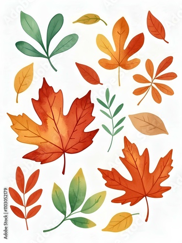 © Adibah, Obraz premium Watercolor Autumn Leaves Clipart, Fall Leaves, Leaf Illustrations, Digital Download, Maple leaf, Thanksgiving card decoration, Autumn Foliage, white background, invitation, wall art, sublimation