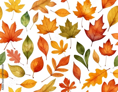 Fototapeta premium Watercolor Autumn Leaves Seamless Pattern