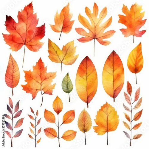 Obraz premium Watercolor Autumn Leaves Sublimation Clipart