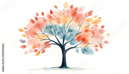 © Akun, Fototapeta premium Watercolor Autumn Tree with White BG.