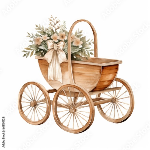 Fototapeta premium Watercolor Baby carriage Clipart on white background.