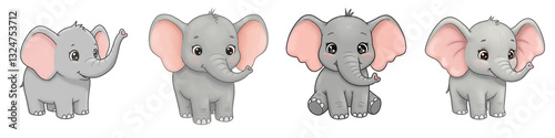 Naklejka premium Watercolor Baby Elephant Clipart Set - Adorable watercolor baby elephants, perfect for children's books, cards, and prints. Symbolizing: innocence, childhood, playfulness, nature, and friendship