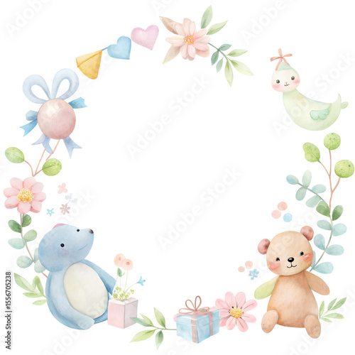 Fototapeta premium watercolor baby shower invitation frame with toys