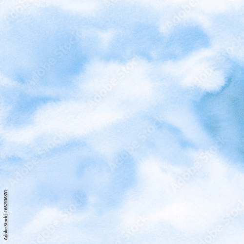 © Kunrus, Fototapeta premium Watercolor Background Blue Sky with Clouds Hand Painted