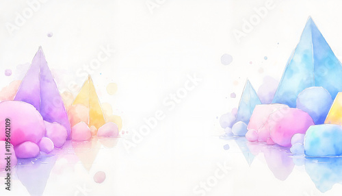 Fototapeta premium Watercolor background with pastel pyramids and reflections