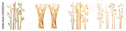 Obraz premium Watercolor Bamboo Collection: Green and Gold Asian Plant Elements