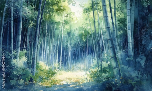 Obraz premium Watercolor Bamboo Forest in Kyoto, Japan
