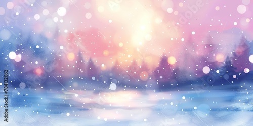 Obraz premium Watercolor banner, twinkling Christmas lights, soft glow on snow, twilight,...