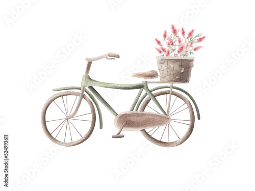 © Aleksandra Baianova, Fototapeta premium Watercolor bicycle with flowers.
